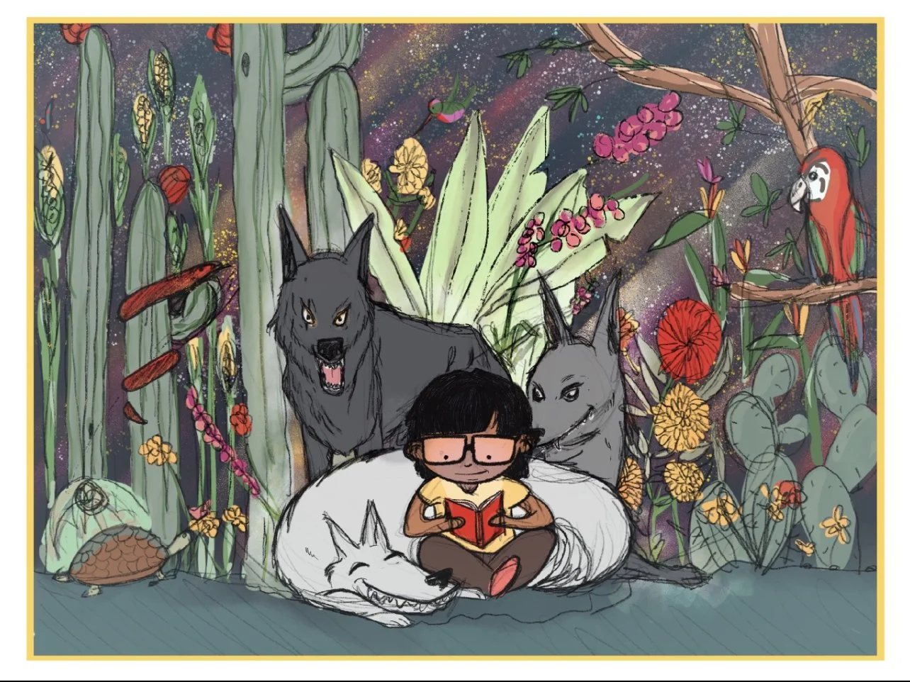pencil, watercolor, watercolor pencils, rainbow pencil, and ink.